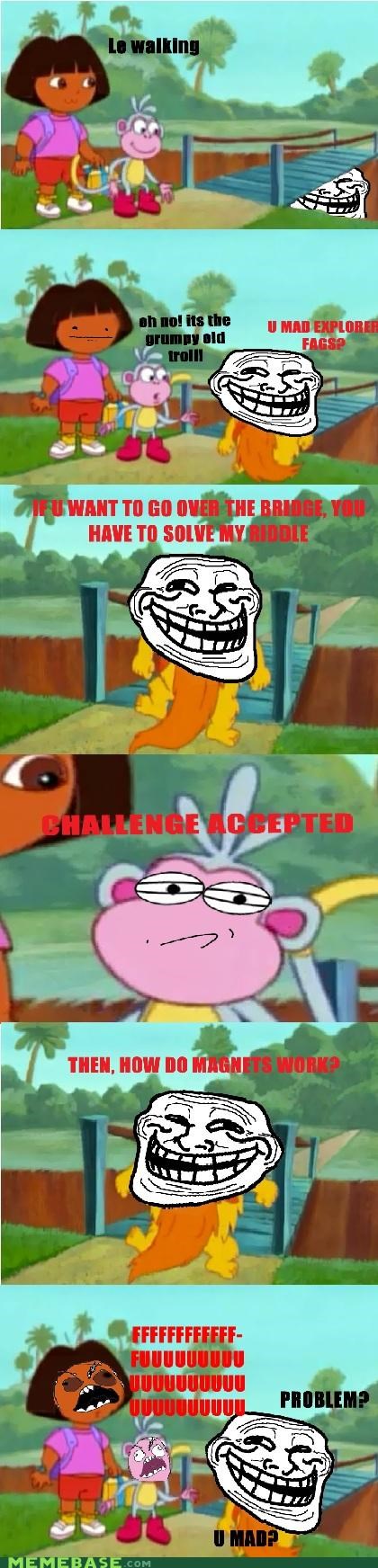 Grumpy Troll Under The Bridge Y U No Let Dora Pass Y U No