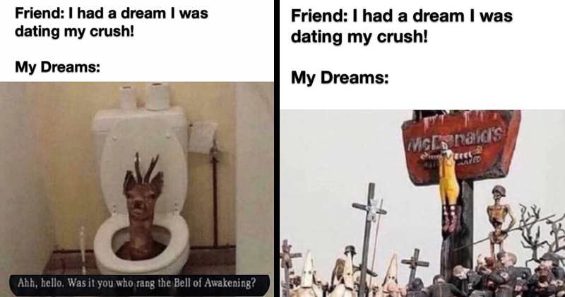 Meme what dream. There are some trending memes whose popularity we don t fully understand and this is one of them. The memes often feature the background of the meme with the primary meme component erased or show an edited image in which zero search results found for that meme. What if our whole life was just a dream. I have a dream. Maybe see a shrink. Falls asleep in class. My parents will understand.