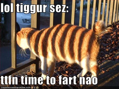 Lol Tiggur Sez Ttfn Time To Fart Nao Cheezburger Funny Memes